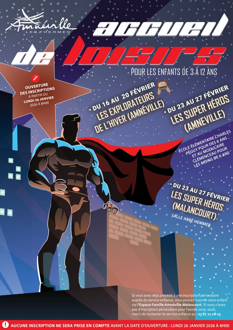 - Les enfants de Malancourt-la-Montagne seront accueillis salle Abbé Hemmer de Malancourt-la-Montagne du 23 au 27 février.