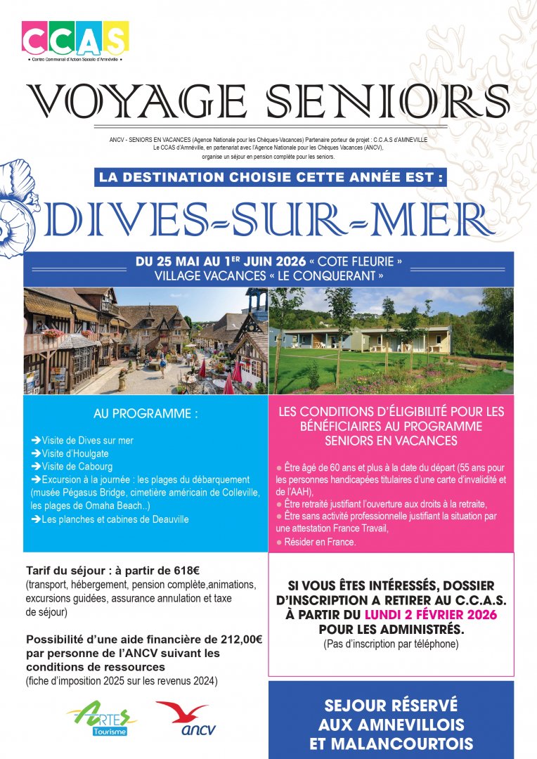 La destination choisie cette année est : DIVES-SUR-MER DU 25 MAI AU 1ER JUIN 2026 « COTE FLEURIE » VILLAGE VACANCES « LE CONQUERANT